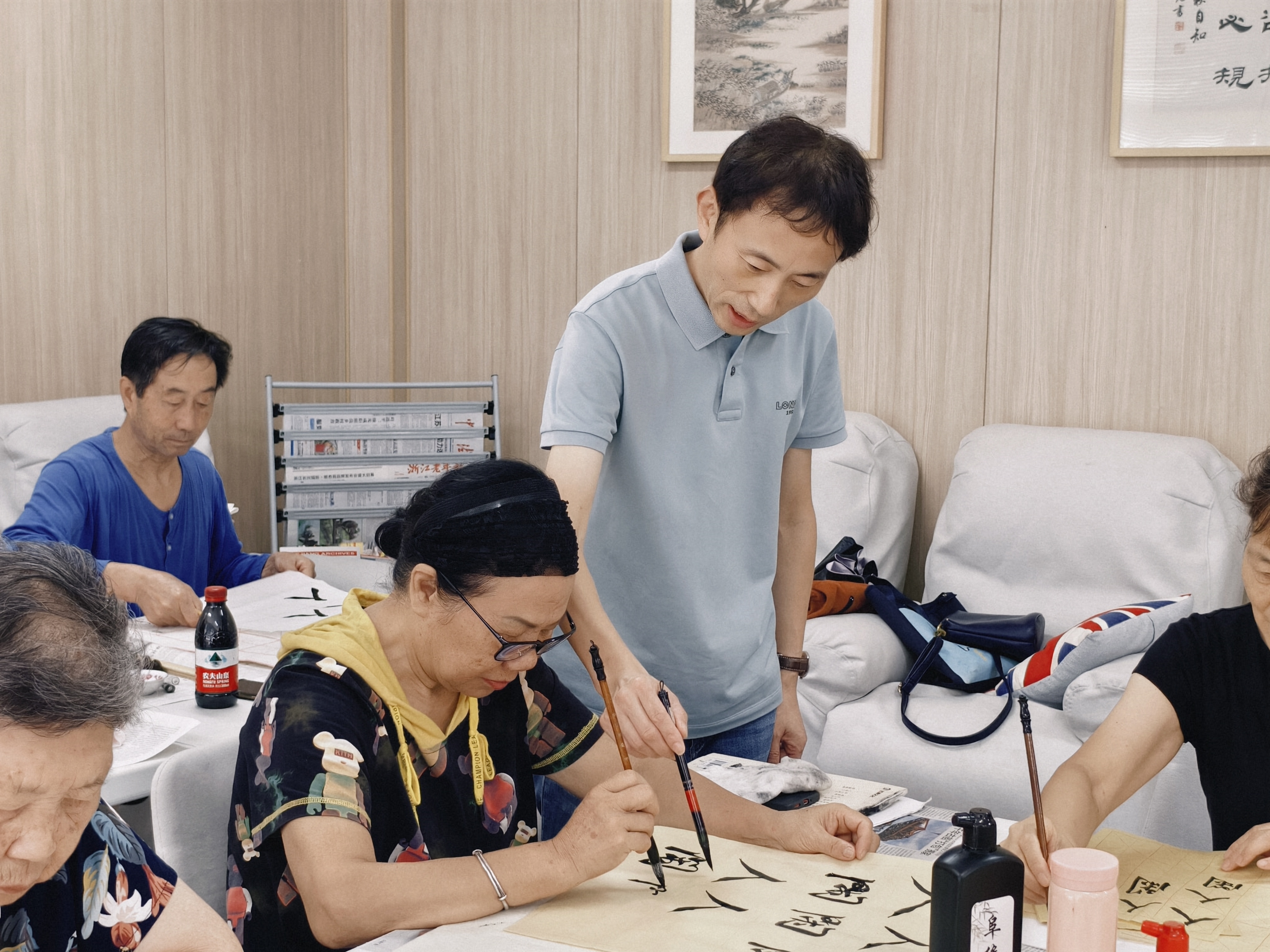 書法教室內,空氣中彌漫著淡淡的墨香。老人們端坐于桌前,神情專注,聽書法教師畢老師講解行書的筆法精髓。“行書講究‘筆斷意連’,就像咱們說話,句子雖有停頓,意思卻要連貫。”畢老師握著毛筆,在宣紙上示范“永字八法”的行書變體,筆尖在紙上游走,橫畫如千里陣云,豎筆似萬歲枯藤,轉折處提按頓挫間,盡顯行書的靈動與流暢。