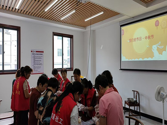 活動(dòng)當(dāng)天,老年學(xué)校的活動(dòng)室內(nèi)歡聲笑語(yǔ),其樂融融。學(xué)校提前為老人們備好了冰皮粉、豆沙、蓮蓉等多種餡料以及專業(yè)的月餅制作工具。在面點(diǎn)師傅的耐心指導(dǎo)下,老人們興致勃勃地動(dòng)手實(shí)踐,從和面、包餡到壓模成型,每一個(gè)步驟都做得認(rèn)真細(xì)致。大家互相交流著制作技巧,分享著生活中的趣事,看著一個(gè)個(gè)晶瑩剔透、造型精美的冰皮月餅在自己手中誕生,老人們的臉上都洋溢著自豪與喜悅的笑容?;顒?dòng)現(xiàn)場(chǎng)彌漫著香甜的味道,更充滿了溫馨和諧的氣氛。