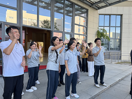 離別的時刻,阿尤石哈輕輕拍著孩子們的肩膀說:“看到你們在這里成長得這么好,我們就放心了,一定要好好學(xué)習(xí)。”(葛飚明)