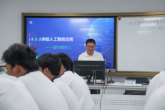活動(dòng)以 “實(shí)踐展示 + 深度研討 + 工作部署” 為主線,內(nèi)容豐富且針對(duì)性強(qiáng)。公開課環(huán)節(jié)以 “同課異構(gòu)” 形式拉開帷幕 —— 溫州市第二職業(yè)中等專業(yè)學(xué)校的周文豪老師與溫州市職業(yè)中等專業(yè)學(xué)校的鄭方方老師,圍繞同一教學(xué)主題“體驗(yàn)人工智能應(yīng)用”同時(shí)開課,通過差異化的教學(xué)設(shè)計(jì)與教學(xué)方法,展現(xiàn)了對(duì)同一課程內(nèi)容的多元解讀與實(shí)踐路徑。兩位老師風(fēng)格各異卻同樣精彩的課堂,為現(xiàn)場(chǎng)教師提供了 “同一課題、不同教法” 的生動(dòng)范例。