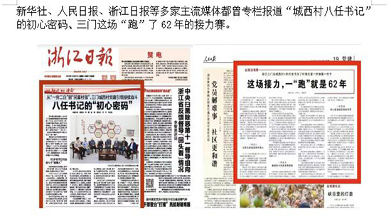 由中央組織部組織開展的第十六屆全國黨員教育電視片觀摩交流活動,講述三門縣海游街道城西村九任書記故事的《初心接力》榮獲全國黨員教育電視片一等獎。海游街道城西村自1957年建立村黨支部以來,九任黨組織書記不忘初心,一任接著一任干,把黨的組織優勢轉化為鄉村治理效能,城西村從“一窮二白”向“村強民富”華麗蛻變,成功打造了新時代黨建引領鄉村振興范本。曾經吃穿都發愁、需要翻身的“翻身村”,成為“浙江省小康示范村”,集體經濟年收入上千萬元,年人均收入8萬多元。2021年建黨100周年,城西村黨委獲評“全國先進基層黨組織”。第九任書記章國進代表村黨委進京領獎,受到習近平總書記等黨和國家領導同志的親切會見并合影留念。