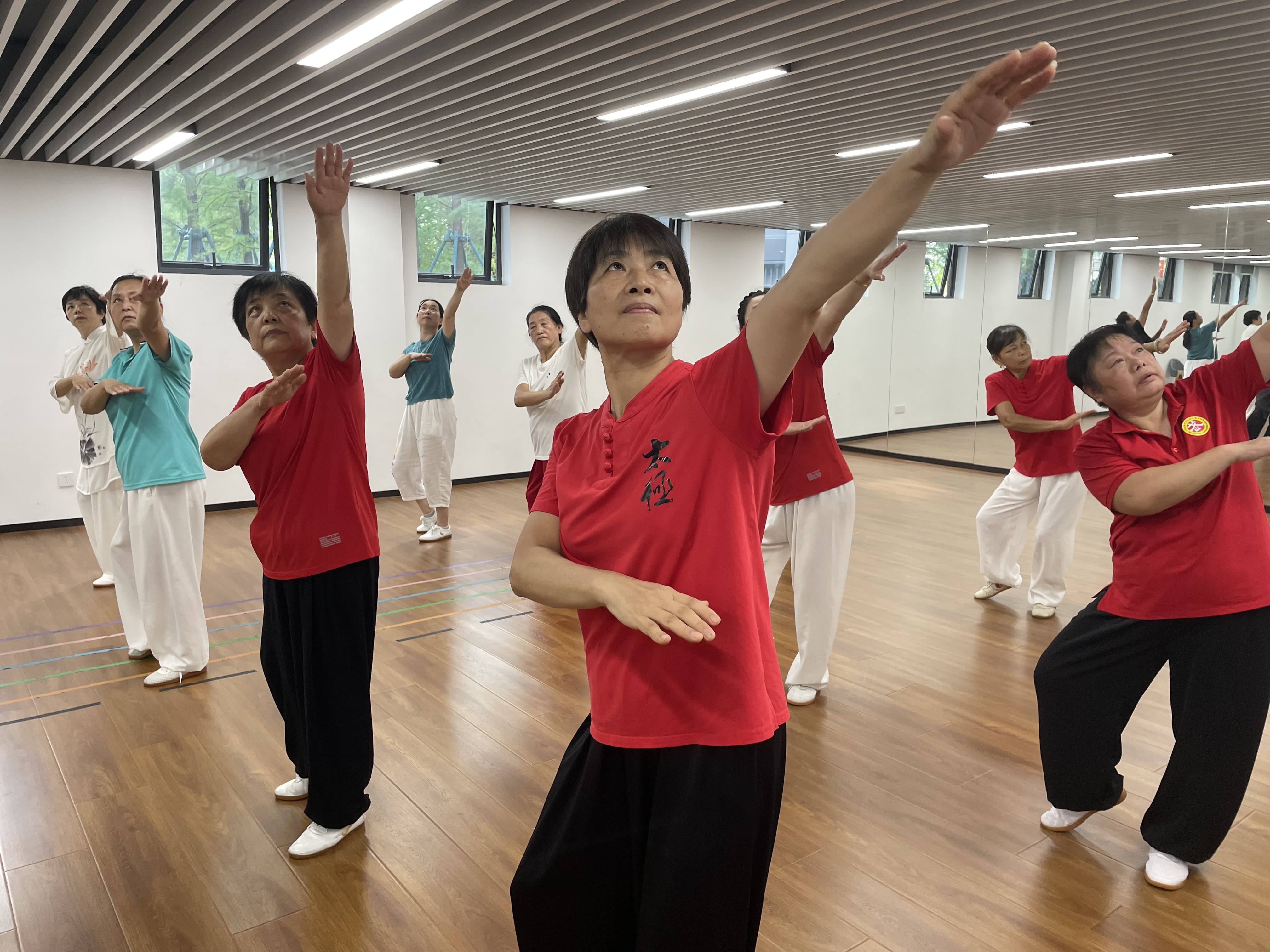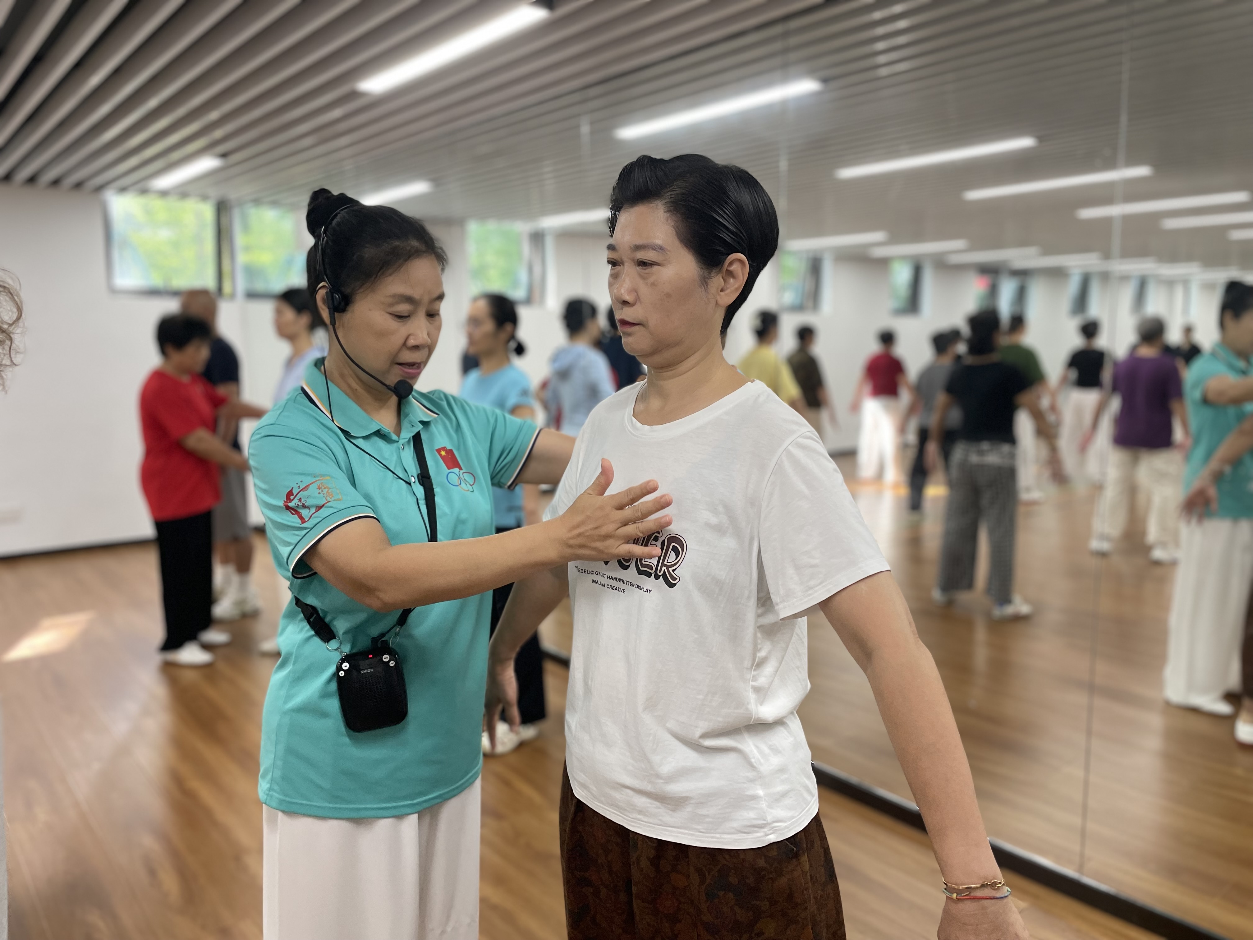 現(xiàn)場,資深教練章老師向?qū)W員們演示八段錦流程,并按“起勢 - 承勢 - 收勢”進(jìn)行拆解,引導(dǎo)學(xué)員感受 “沉肩墜肘”的感覺,強(qiáng)調(diào)練習(xí)時(shí)要讓呼吸與動(dòng)作相結(jié)合。