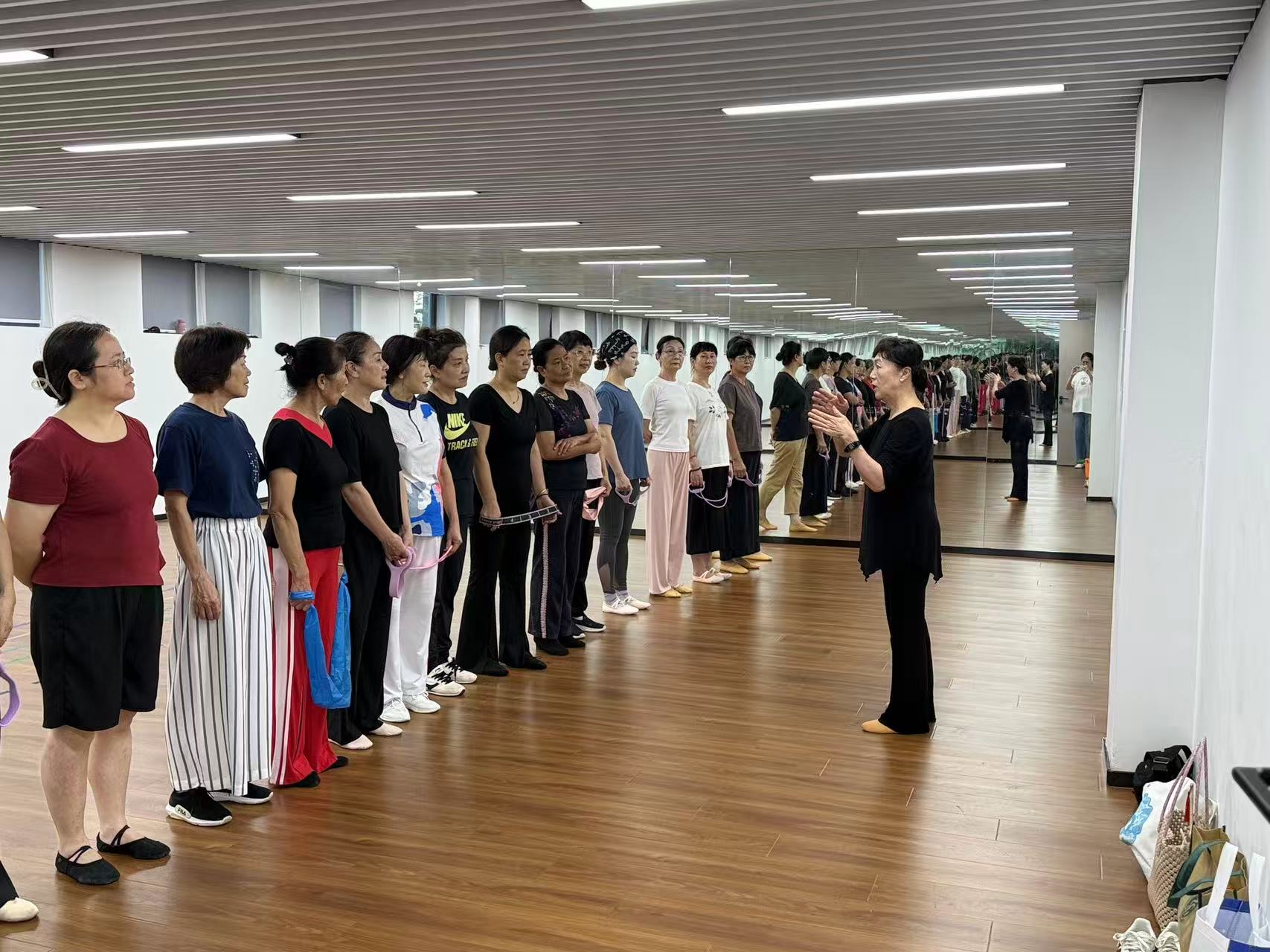 第一堂課,授課的王老師立足老年學(xué)員身體特點(diǎn)與學(xué)習(xí)需求,將 “夯實(shí)基礎(chǔ)、做好熱身” 作為開課重點(diǎn)。她詳細(xì)示范關(guān)節(jié)活動(dòng)、肢體拉伸等熱身動(dòng)作,逐一向?qū)W員講解動(dòng)作要領(lǐng),引導(dǎo)學(xué)員從規(guī)范基礎(chǔ)動(dòng)作學(xué)起,養(yǎng)成科學(xué)練習(xí)的習(xí)慣。學(xué)員們精神飽滿,認(rèn)真跟隨老師示范練習(xí)。