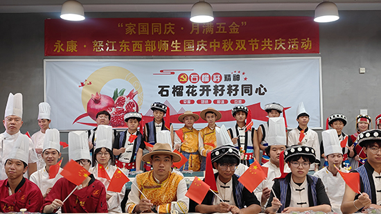 同時,為迎國慶中秋,學校還開展了“家國同慶 月滿五金”各族師生共制月餅活動,只見云南傈僳族的花紋樣式、貴州彝族的餡料配方與永康傳統月餅工藝碰撞交匯,香甜氣息中滿是民族團結的暖意。而夜幕下的現代服務學院民族音樂節上,各民族舞蹈與青春之歌交織共鳴,融匯成 “各美其美,美美與共” 的深厚情誼。