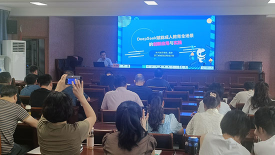 長興職教集團(tuán)吳錚老師根據(jù)前期的培訓(xùn)需求調(diào)查,精心設(shè)計了《DeepSeek賦能成人教育全場景的創(chuàng)新應(yīng)用與實踐》的專題講座,把參訓(xùn)教師“急難愁盼”的AI應(yīng)用困惑進(jìn)行了及時有效的解答,特別是他暖心準(zhǔn)備的《吳老師的AI百寶箱》為大家打開了一扇通往AI世界的窗戶,他分享的利用各類AI工具開展的文字、圖片、音視頻、課件等辦公輔助小技巧深受大家的歡迎和喜愛,運(yùn)用AI工具即興創(chuàng)作歌曲更是把培訓(xùn)推向了高潮。長興陽光技校資深培訓(xùn)師吳燕燕分享了如何利用AI找工作、進(jìn)行工作事務(wù)管理以及如何利用DeepSeek和kimi制作清晰的PPT等技巧,特別是她帶來的運(yùn)用“631法則”解決困擾大家已久的招生問題小妙招讓大家耳目一新。