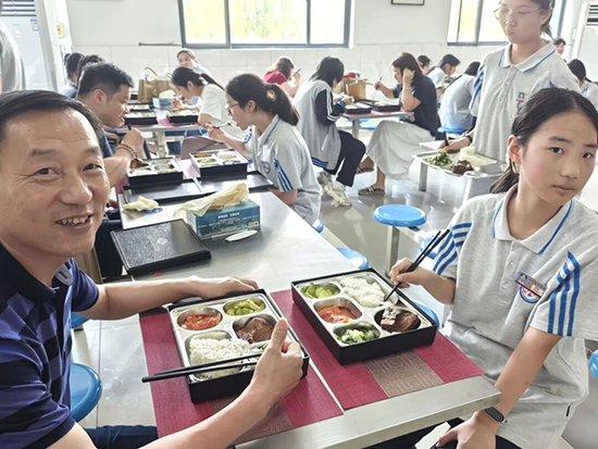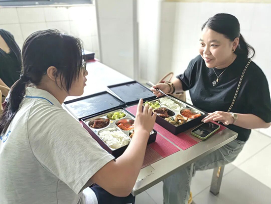 會后,家長們走進(jìn)食堂,和孩子們共進(jìn)午餐。他們圍坐在一起,聊聊學(xué)習(xí)生活、嘗嘗食堂美味,現(xiàn)場氛圍溫馨而快樂。