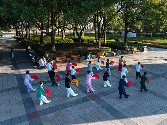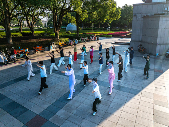 10月13日,陽光正好,微風(fēng)不燥。安吉縣生態(tài)廣場上一派熱鬧景象,由安吉縣社區(qū)教育學(xué)院遞鋪分院組織的老年太極班日常訓(xùn)練活動(dòng)在此順利開展。來自安吉縣各個(gè)村鎮(zhèn)、社區(qū)的30多位老年學(xué)員齊聚一堂,以一招一式的太極動(dòng)作,展現(xiàn)著銀齡群體的活力與風(fēng)采,成為生態(tài)廣場上一道獨(dú)特且動(dòng)人的風(fēng)景線。?
