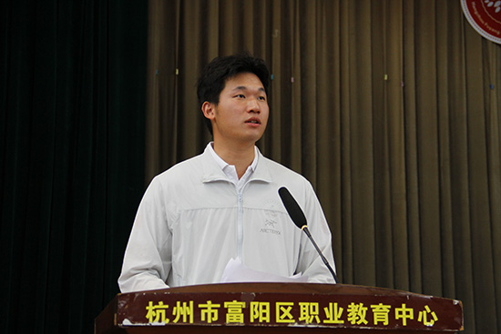 優秀校友代表劉金龍通過充滿感染力的發言,以其個人成長經歷為學弟學妹樹立了生動的榜樣。他將富陽職教中心比作助力重生的“復活點”、裝備精良的“軍火庫”和對接社會的“前哨站”,深情回顧了母校為他提供的無限可能。他通過抓住競賽、升學、特長發展等機會,從職教學子成長為國家公職人員,用實際行動詮釋了“技能成就夢想”的真諦。劉金龍還列舉了其他校友在知名企業嶄露頭角、攻讀碩士學位的成功案例,證明職教生同樣能在社會大舞臺上大放異彩。他的成長歷程生動展現了職業教育的發展前景,激勵在場學子珍惜資源、磨練技能,在職教沃土中閃耀屬于自己的光芒。