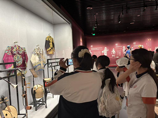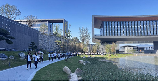 湖州職業(yè)技術(shù)學院藝術(shù)與時尚創(chuàng)意學院的李娜和李禎禎老師帶領(lǐng)同學們開啟了一場沉浸式的校園文化之旅。師生一行首先步入在包婉蓉京劇服飾館,一件件繡工精美、紋樣華麗的戲服靜靜陳列,同學們駐足良久,在服飾的方寸之間賞析傳統(tǒng)美學展示的精美服飾與歷史故事,吸引學生駐足賞析。在圖書館,豐富的專業(yè)藏書與便捷的數(shù)字資源,為學生們打開了一扇通往設(shè)計前沿的窗口。大家或翻閱紙頁,或瀏覽數(shù)據(jù)庫,在知識的海洋中尋找靈感,汲取專業(yè)成長的養(yǎng)分。