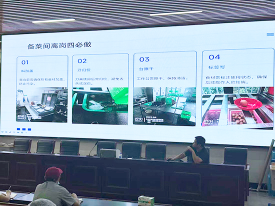 培訓(xùn)會上,孫捷副主任首先通過現(xiàn)場實拍圖片,直觀指出了當(dāng)前食堂工作中存在的九類典型安全隱患,包括地面積水、面粉未密封存放、防鼠板未規(guī)范使用等問題。針對這些隱患,他對照食品安全規(guī)范,對物品歸位、工具清潔、離崗管理、更衣戴口罩等環(huán)節(jié)提出了明確、細致的操作要求,強調(diào)全體員工應(yīng)在日常工作中嚴格落實各項衛(wèi)生管理制度,注重細節(jié),杜絕安全隱患。參訓(xùn)員工認真聆聽、積極對照反思,紛紛表示將在今后工作中進一步增強責(zé)任意識,注重操作細節(jié),持續(xù)改進不足,切實將“隱患清零”落實到每一個工作環(huán)節(jié)。