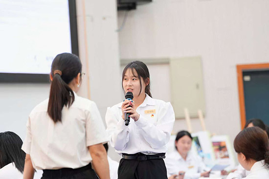 現(xiàn)場(chǎng),三節(jié)貫穿小學(xué)、初中、大學(xué)的思政示范課展示成為活動(dòng)焦點(diǎn)。浙江開放大學(xué)臨平學(xué)院作為思政一體化建設(shè)合作單位發(fā)揮積極作用,呈現(xiàn)了一堂富有時(shí)代氣息與青春力量的思政展示課。邵雪芬老師與20名大專學(xué)生聯(lián)袂登場(chǎng),共同呈現(xiàn)了一堂題為《我心向黨,青春擔(dān)當(dāng)》的思政展示課。課程設(shè)計(jì)精巧、形式新穎,學(xué)生們通過情景劇、主題演講、小組討論等多種形式,詮釋了新時(shí)代青年對(duì)黨光輝歷程的理解與感悟,生動(dòng)表達(dá)了將個(gè)人理想融入國(guó)家發(fā)展偉業(yè)的堅(jiān)定決心。