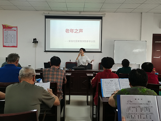 10月15日下午,安吉社區教育學院孝豐分院 “老年之聲”公益課堂走進三眼井社區文化禮堂,鄧念梅老師帶領40余名社區老年學員學唱經典喜慶歌曲《好運來》,用歡快的旋律為老年人的晚年生活增添別樣色彩。