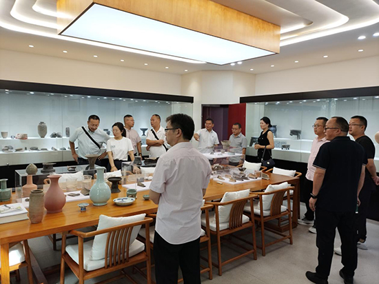 上午9:30,蒼溪職中交流團準時抵達,在良渚職高團隊的熱情迎接下,雙方首先于臺階處合影留念,定格兩校協(xié)作交流的重要瞬間。隨后,交流團先后參觀了學校陶藝館、創(chuàng)新創(chuàng)業(yè)教室、校園文化走廊、職業(yè)體驗中心及相關專業(yè)實訓場室,實地了解良渚職高在校園文化打造、實訓場地建設、設備配置與教學實踐融合方面的經(jīng)驗做法。整潔規(guī)范的實訓環(huán)境、先進的教學設備與特色的黑陶工藝等,給考察交流團留下深刻印象,雙方不時駐足交流,探討東西協(xié)作的創(chuàng)新路徑。