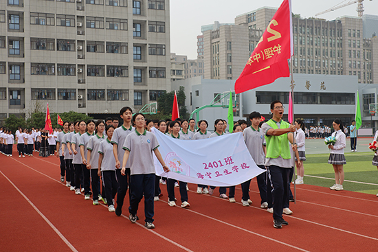 在這里,“我運動,我陽光,我拼搏,我健康!” 的口號與陣陣歡呼吶喊聲交織共鳴,各班踏歌進場,奏響了青春最動人的樂章。?