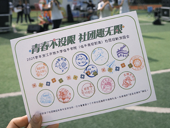 同時,為鼓勵學(xué)生深入了解社團(tuán),游園會設(shè)置集章活動,這一活動不僅提升了攤位互動性,也讓更多人主動走進(jìn)社團(tuán)、了解社團(tuán),為招新增添了別樣樂趣。