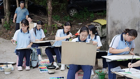 色彩老師黃舒曼說(shuō),戶外寫生最能鍛煉學(xué)生的觀察力和表現(xiàn)力,要學(xué)會(huì)捕捉轉(zhuǎn)瞬即逝的光色變化,這是藝術(shù)成長(zhǎng)的重要一課。比如讓同學(xué)們觀察山林的綠葉在夏末的強(qiáng)光下和初秋的質(zhì)感是不同的,希望同學(xué)們通過(guò)寫生,能夠理解季節(jié)轉(zhuǎn)換中色彩的微妙變化。