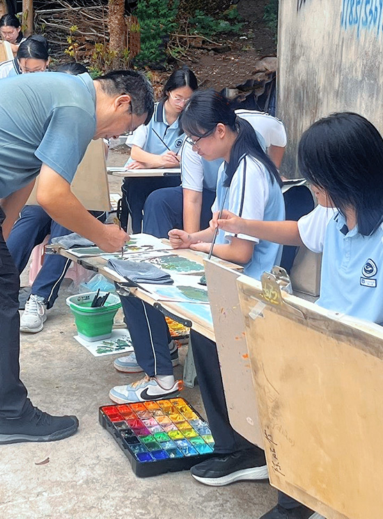 本次“色彩風(fēng)景”寫生課程作為繼高一階段色彩啟蒙合作教學(xué)之后的第二模塊延續(xù),特邀高校博士與華僑職專教師共同授課,實(shí)施6周風(fēng)景色彩課堂“雙師共導(dǎo)”模式,祁博士將課程分成了“視角捕捉、色彩關(guān)系歸納、光色關(guān)系的把握、畫面關(guān)系塑造”四大模塊訓(xùn)練,最后在“寫生實(shí)踐”中實(shí)現(xiàn)綜合提升。本次課程推進(jìn)中職至本科七年一貫制教學(xué)體系的深度融合與有效貫通,進(jìn)一步彰顯學(xué)校在長(zhǎng)學(xué)制藝術(shù)人才培養(yǎng)方面的專業(yè)優(yōu)勢(shì)。(葉穎穎)