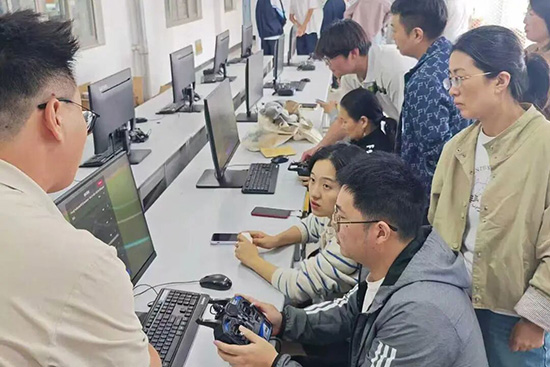 活動現(xiàn)場,學生們化身“準飛手”,在專業(yè)指導下先通過模擬飛行熟悉操控邏輯,再轉戰(zhàn)室內外實飛場地:室內練穩(wěn)懸停精度,室外練飛行流暢度,還重點攻克了環(huán)繞目標、跟隨移動對象等實用飛行手法,不少同學眼神專注地操控搖桿,臉上滿是探索的熱情。另一邊,教師團隊則聚焦“能教善導”,從無人機零部件識別到整機拆裝,從常見故障排查到精準檢修,每一個步驟都反復實操演練,為后續(xù)課堂教學儲備扎實的實操經(jīng)驗。