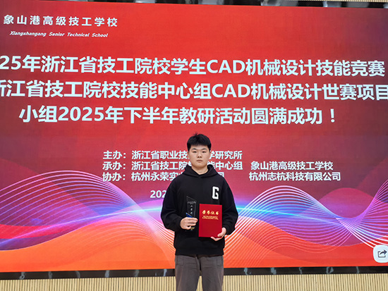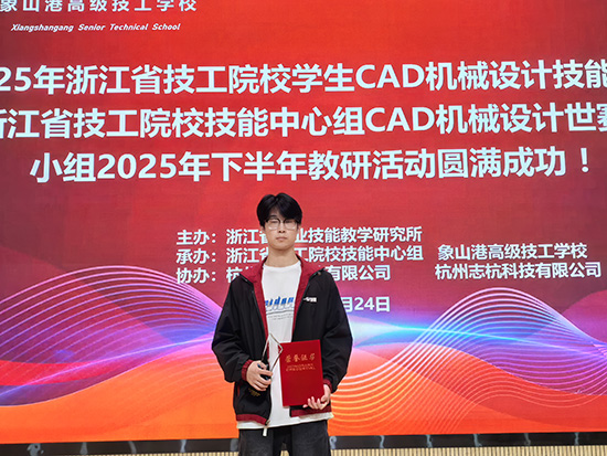 金秋十月,喜報(bào)傳來。2025年10月24日,由浙江省職業(yè)技能教學(xué)研究所主辦的2025年浙江省技工院校學(xué)生CAD機(jī)械設(shè)計(jì)技能競賽在寧波象山落下帷幕,海寧技師學(xué)院學(xué)子憑借扎實(shí)的專業(yè)功底、精湛的操作技能與出色的創(chuàng)新表現(xiàn),從全省精英選手中脫穎而出,榮獲高級(jí)工組二等獎(jiǎng)和中級(jí)工組三等獎(jiǎng),充分展現(xiàn)了學(xué)校在智能制造領(lǐng)域高技能人才培養(yǎng)的顯著成效。