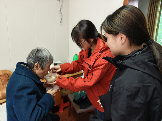 志愿者們還開展了“送服務(wù)送溫暖”活動。求是義工團的志愿者們給老人們送上了理發(fā)、剪指甲服務(wù);浙江農(nóng)商院財會金融學(xué)院的學(xué)生們端著親手包的餃子走進老人們的房間陪伴老人吃餃子、拉家常,有的學(xué)生還拿起隨帶的相機給老人拍照留念。