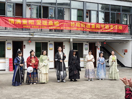 最后,浙江農(nóng)商院財會金融學(xué)院學(xué)生也為老人們獻上了漢服走秀和歌曲演唱等節(jié)目,他們充滿朝氣、充滿活力的表演如同一陣陣清風(fēng),吹進了老人們的心田,吹開了一張張笑臉。