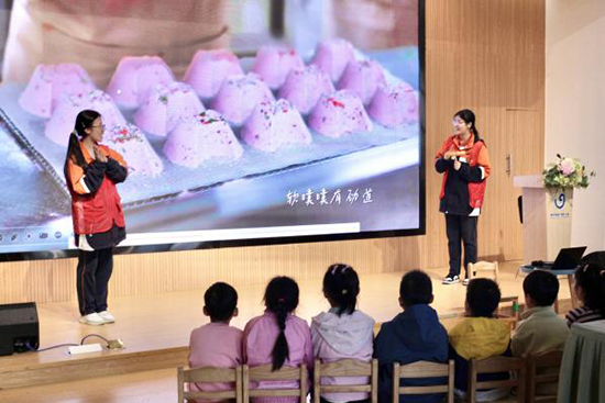 簽約儀式后,學校幼兒保育專業學生們為南太湖幼兒園的幼兒們帶來一場生動有趣的志愿服務活動《江南童韻樂——綠青山小調組歌音樂活動》。活動中,學生們化身“小老師”,用童趣化的語言向幼兒講解《綠青山小調組歌》中蘊含的生態環保理念與湖州本土非遺文化,通過歌曲學唱、節奏律動、樂器互動等形式,引導孩子們感受音樂之美、自然之美。幼兒們積極參與、踴躍互動,現場氛圍熱烈溫馨。