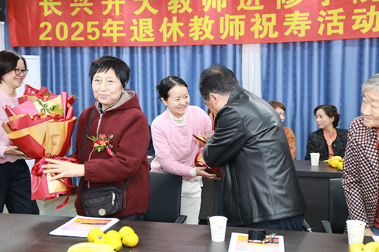 學院黨總支書記章小杰、副書記孫甫永和退教協會會長徐金昌為壽星們送上鮮花和紀念品。
