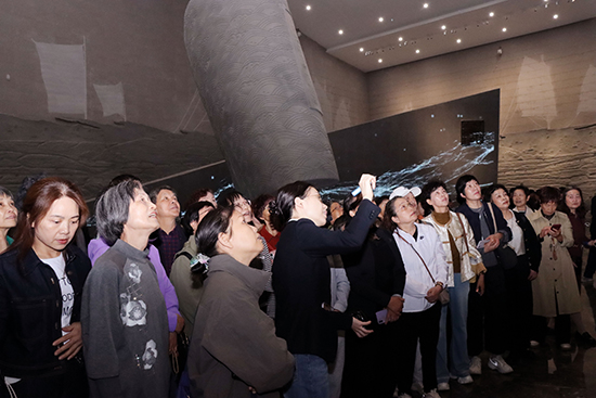 浙東運河博物館內(nèi),老年學員們在講解員的帶領下,沿“運河緣起—水運興盛—文化交融” 的展陳脈絡緩步前行。講解間隙,老年學員們不時提問交流,探討運河對浙東地區(qū)民俗、商貿(mào)、城市發(fā)展的深遠影響。在四十分鐘的研學時光里,追溯運河歷史脈絡,從千年水運文化中感悟時光沉淀的生命力量。