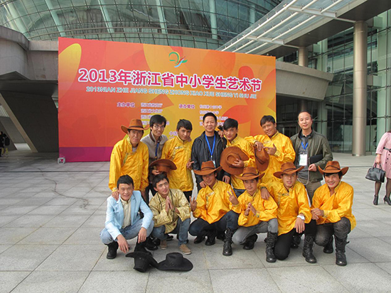 2013年開(kāi)始,楊劍老師充分發(fā)揮西藏學(xué)生的歌舞天賦組建了民族歌舞隊(duì),并進(jìn)行第一次藏族舞蹈《雪域情》的創(chuàng)作。2014年,該舞蹈獲得鄞州區(qū)中小學(xué)藝術(shù)節(jié)舞蹈比賽一等獎(jiǎng)、寧波市中小學(xué)藝術(shù)節(jié)舞蹈比賽一等獎(jiǎng),浙江省中小學(xué)藝術(shù)節(jié)舞蹈比賽三等獎(jiǎng)。