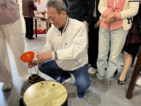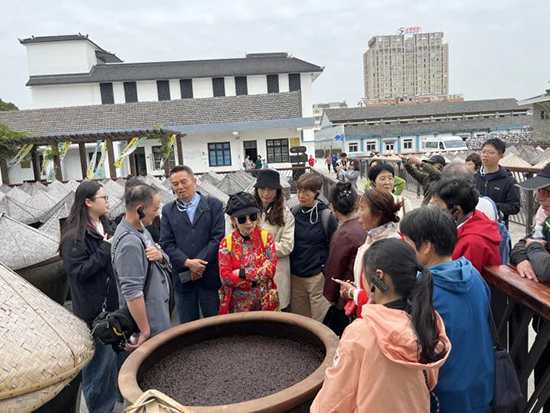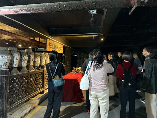 行前教育結(jié)束后,一行人乘坐大巴前往海鹽官醬園參觀學(xué)習(xí)。官醬園作為沈蕩鎮(zhèn)百年老字號品牌,擁有四項(xiàng)非物質(zhì)文化遺產(chǎn),一直堅守百年古釀技藝。學(xué)員們首先在展廳中聽取了導(dǎo)游的講解,學(xué)習(xí)了官醬園的歷史文化知識;接著參觀了地下酒窖,感受黃酒和白酒彌漫在空氣中的香味;隨后,參觀了醬油大曬場,親眼目睹了曬場上整齊排列的釀曬缸,并體驗(yàn)了一次真正的醬缸打醬油。通過這一系列的參觀和體驗(yàn),學(xué)員們不僅了解了醬油的制作過程,還深刻體會到了“時光沉淀”的匠心與耐心。