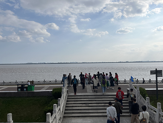 午飯后,學(xué)員們前往海寧鹽官賞天下奇觀——錢塘江大潮。在潮水到來前,學(xué)員們觀察了江面、風(fēng)向的變化,感受了錢塘江大潮的視覺與聽覺震撼。此次活動不僅讓學(xué)員們親身感受了自然力量的澎湃,還領(lǐng)悟了“順勢而為”的人生智慧。立于錢塘江畔,學(xué)員們從那奔騰不息、聲聲如雷的潮涌中,感受到了生命的磅礴與豪情。