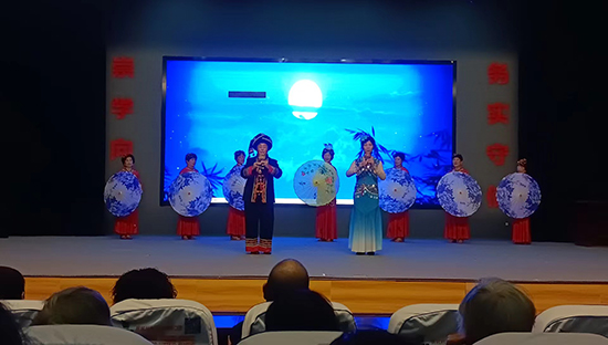 晚會以融合傳統與現代的文藝演出為核心,天荒坪成校老年學員成為亮點。葫蘆絲班學員身著統一服飾,演繹《月光下的鳳尾竹》等經典曲目,婉轉音韻承載著對傳統文化的堅守;歌詠班則獻上歌舞《紅梅贊》,以鏗鏘舞步與激昂歌聲詮釋革命精神,舞臺光影間勾勒出“銀齡風采”的生動畫卷。此類社區文藝實踐,呼應了全國重陽活動中“傳統文化與現代元素創新融合”的節日理念,使尊老敬老內涵更具感染力。