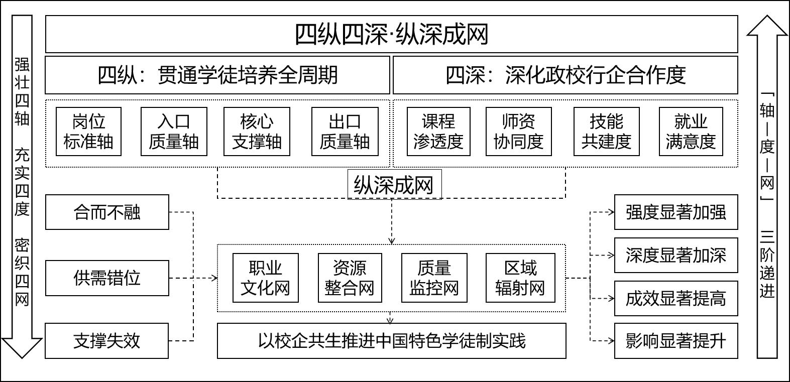 在“強壯四軸”夯基壘臺、“充實四度”立柱架梁的基礎(chǔ)上,密織“四網(wǎng)”,形成“軸—度—網(wǎng)”三階遞進,最終形成全方位、多層次的產(chǎn)教融合網(wǎng)絡(luò),疏解支撐失效痛點,以“四縱四深·縱深成網(wǎng)”的人才培養(yǎng)模式促進中國特色學(xué)徒制向縱深發(fā)展。