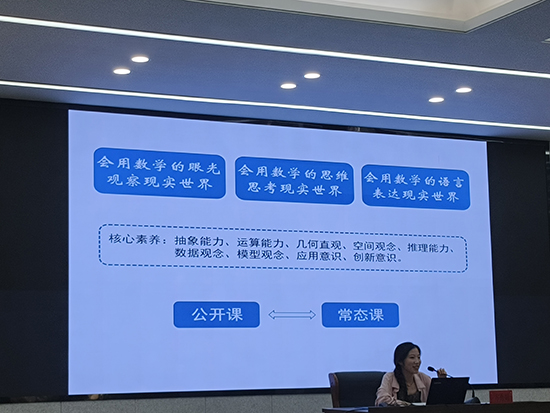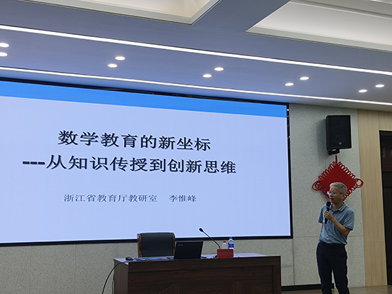 培訓(xùn)期間,浙江省教育廳教研室初中數(shù)學(xué)教研員李惟峰作主題為《數(shù)學(xué)教育的新坐標(biāo)——從知識(shí)傳授到創(chuàng)新思維》的專題講座,李老師從創(chuàng)新思維培養(yǎng)的背景、創(chuàng)新思維培養(yǎng)的關(guān)鍵、創(chuàng)新思維培養(yǎng)的建議三個(gè)維度深刻闡述了創(chuàng)新思維培養(yǎng)的重要性、內(nèi)容和路徑,為參訓(xùn)教師從“知識(shí)傳授”走向“素養(yǎng)教學(xué)”的轉(zhuǎn)變提供了理念上的更新和實(shí)踐上的引領(lǐng)。寧波市教育局教研室初中數(shù)學(xué)教研員楊一麗作主題為《理解課標(biāo) 解構(gòu)教材 賦能教學(xué)》的專題講座,講座從課標(biāo)主要的突破、教材修訂的主要方面、教學(xué)的思考等方面展開(kāi),同時(shí)結(jié)合課例分析讓參訓(xùn)教師對(duì)課堂上如何讓學(xué)生的思維得到生長(zhǎng)與升華有了直觀的感知,為研題提供方向和框架。湖州市教育科學(xué)研究中心初中數(shù)學(xué)教研員沈瑩琪作主題為《讓孩子學(xué)會(huì)學(xué)習(xí):新課標(biāo)下初中數(shù)學(xué)深度教學(xué)的設(shè)計(jì)與思考》的專題講座,沈老師通過(guò)幾個(gè)案例的分析讓參訓(xùn)教師明白如何實(shí)現(xiàn)評(píng)價(jià)與教學(xué)的一致性并在教學(xué)中怎樣實(shí)現(xiàn)高路遷移和深度教學(xué),同時(shí)還強(qiáng)調(diào)數(shù)學(xué)教師一定要學(xué)會(huì)學(xué)習(xí),要努力把我們的數(shù)學(xué)課上得更深一點(diǎn)、更有味道點(diǎn),讓孩子們學(xué)起來(lái)更輕松更愉快。
