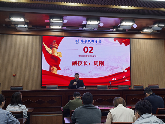 隨后,副校長周剛就學生實習管理工作作專題匯報。他詳細介紹了當前各專業(yè)學生實習的整體安排、進展情況及初步成效,深入分析了實習過程中存在的重點和難點問題,并提出有針對性的改進措施與優(yōu)化方案。周剛指出,實習是技術(shù)技能人才培養(yǎng)的關(guān)鍵環(huán)節(jié),是檢驗教學成果、銜接社會需求的重要橋梁。必須進一步強化過程管理,完善校企協(xié)同機制,加強對學生的安全教育、心理關(guān)懷和職業(yè)指導,確保實習工作安全、有序、高效開展,切實提升學生的實踐能力與綜合素養(yǎng)。