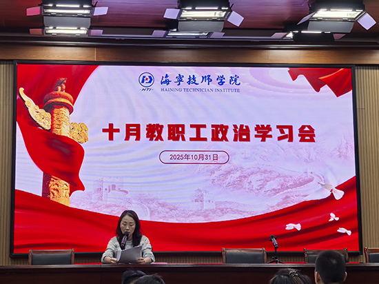 為持續(xù)深化理論武裝,凝聚奮進力量,統(tǒng)籌推進教育教學與人才培養(yǎng)等各項中心工作,海寧技師學院于2025年10月31日召開全體教職工政治學習會。會議聚焦政治理論學習、學生實習管理、教師專業(yè)發(fā)展等核心議題,旨在統(tǒng)一思想、明確方向,為學校下一階段的高質(zhì)量發(fā)展注入強勁動力。會議由副校長王立群主持。