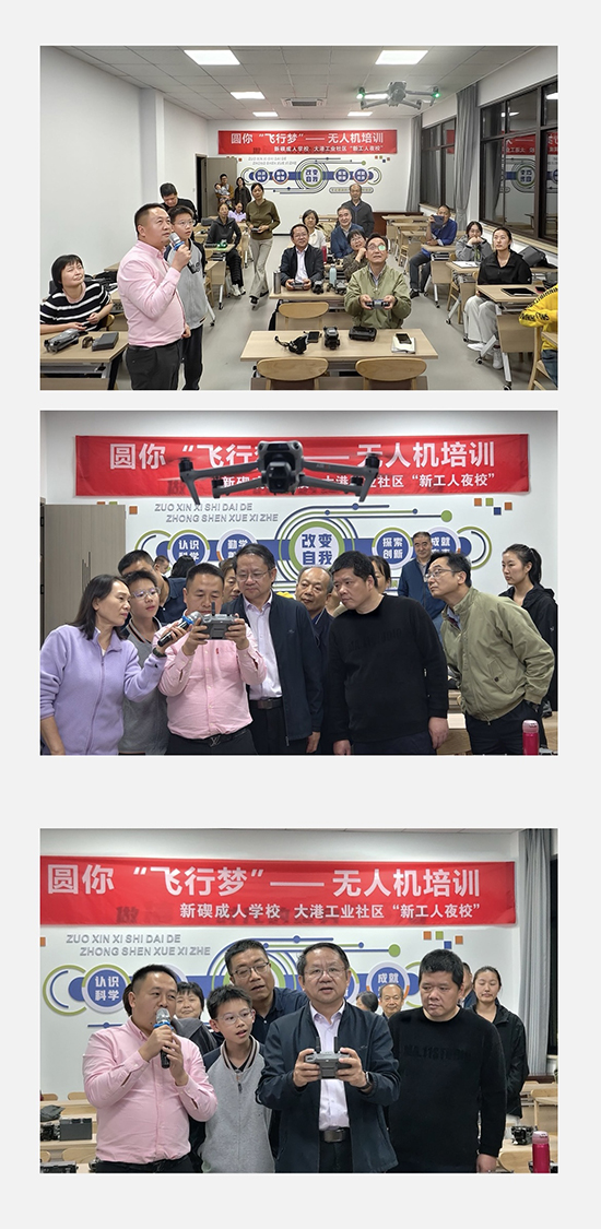 從仰望天空的“好奇者”到親手掌控的“飛行者”,近日,新碶成校“無人機公益夜校”圓滿結課。三十余名企業職工和社區居民通過為期一周的系統學習,成功掌握了無人機操控與基礎航拍技能,在藍天之上完成了與智能科技的一次親密接觸,順利從“小白”進階為“初級飛手”。