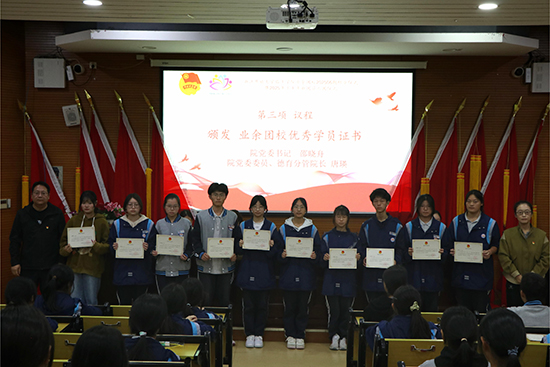 儀式第二項(xiàng)議程中,院團(tuán)委副書記劉栩吟對 202506 期業(yè)余團(tuán)校培訓(xùn)工作進(jìn)行總結(jié)。她回顧了學(xué)員們共同學(xué)習(xí)、共同進(jìn)步的歷程,肯定了大家在培訓(xùn)期間展現(xiàn)出的良好精神風(fēng)貌,并宣讀了團(tuán)校結(jié)業(yè)學(xué)員名單。隨后,院團(tuán)委書記劉非、院團(tuán)委副書記劉栩吟為業(yè)余團(tuán)校學(xué)員代表頒發(fā)結(jié)業(yè)證書。
