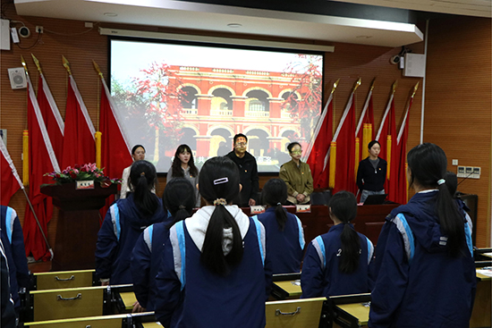 儀式伊始,主持人向在場師生介紹了出席本次活動的校領(lǐng)導(dǎo)及老師,他們分別是:院黨委書記邵曉舟,院黨委委員、德育分管院長唐瑛,院團(tuán)委書記劉非,院團(tuán)委副書記劉栩吟,團(tuán)委委員丁一蘭。在莊重的氛圍中,主持人宣布儀式正式開始,全體人員起立,奏唱國歌,嘹亮的歌聲里滿是青年學(xué)子的赤誠與擔(dān)當(dāng)。