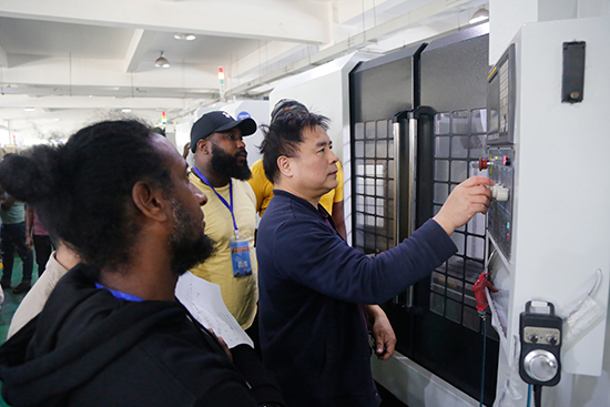 培訓中,浙江省特級教師、正高級教師樂崇年圍繞“數控銑床仿真操作加工”等內容開展系統教學,指導學員借助五軸聯動設備完成從3D建模到精密加工的全流程訓練。學員約瑟夫在完成數控銑工實訓后表示:“樂老師的課既有理論深度,又注重實操指導,對我們回國后參與船舶制造、汽車零部件生產非常有幫助。”