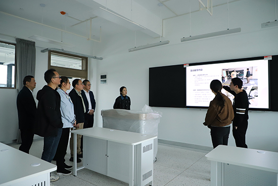 在鄞州職高校長張武劍的陪同下,高校與企業代表一同參觀了學校的數字綜合實訓室、百度AI綜合實訓室、數智職業體驗中心、數智星工場、AI科創實訓室等現代化教學實踐場所。參觀過程中,各方代表對學校先進的設施設備、豐富的教學場景以及濃厚的數智化育人氛圍給予了高度評價。