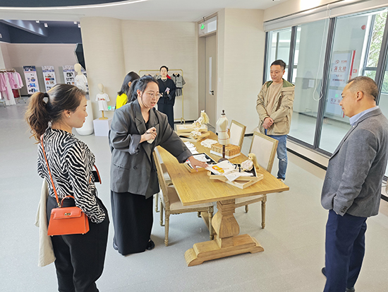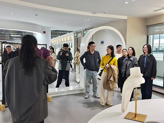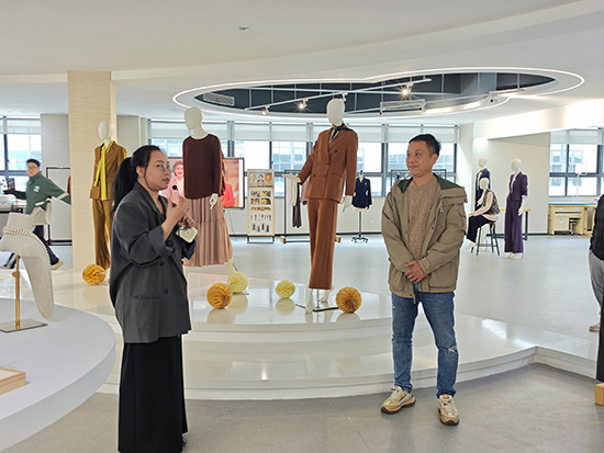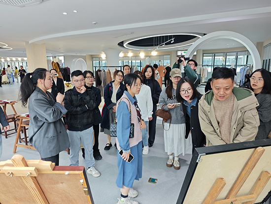 研修團(tuán)隊(duì)首站抵達(dá)溫州市甌海職業(yè)中專集團(tuán)學(xué)校,在對(duì)方校領(lǐng)導(dǎo)陪同下,參觀時(shí)尚設(shè)計(jì)學(xué)部服裝實(shí)訓(xùn)室,實(shí)地了解產(chǎn)教融合模式。