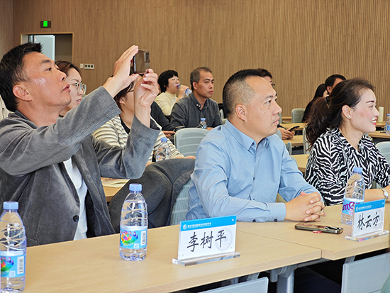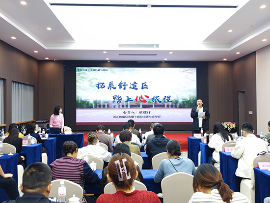 溫州市甌海職業(yè)中專集團(tuán)學(xué)校副校長(zhǎng)陳超超以《“甌潮” 文化引領(lǐng)下的中職 “三甌六潮” 德育模式探索》為題作專題講座。她從 “理念與路徑:以美立人”“實(shí)踐與舉措:各美其美”“輻射與傳播:美美與共” 三個(gè)維度,系統(tǒng)分享了學(xué)校在德育工作中的探索歷程與顯著成效。講座既有理論高度的深度剖析,又有具體案例的生動(dòng)解讀,引發(fā)了研修團(tuán)隊(duì)的強(qiáng)烈共鳴,大家紛紛表示對(duì)中職德育工作有了更清晰的思路。
