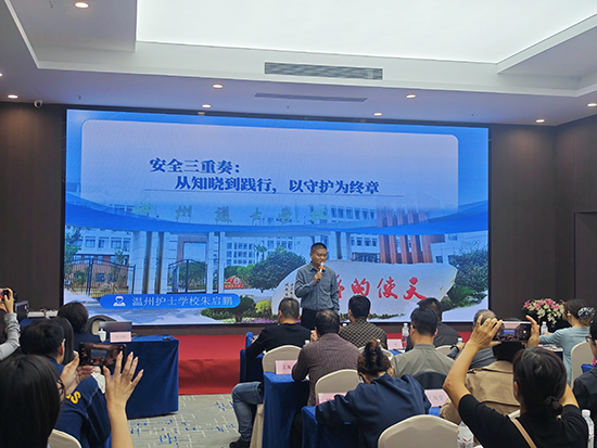 溫州護(hù)士學(xué)校副書記朱啟鵬(深耕德育與安全管理十余年)以 “學(xué)校安全管理與學(xué)生關(guān)懷” 為核心授課。他強(qiáng)調(diào)安全是學(xué)校首要工作,需全員參與,從軍訓(xùn)、運(yùn)動(dòng)會(huì)、日常場(chǎng)景細(xì)化安全措施;還分享與家長(zhǎng)溝通技巧、學(xué)生關(guān)懷方法,并解讀安全相關(guān)法律法規(guī),為學(xué)校安全管理筑牢防線。