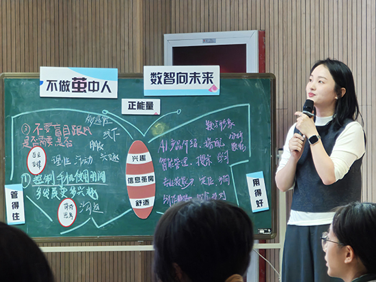 研修團(tuán)隊(duì)共同觀摩了溫州市甌海職業(yè)中專集團(tuán)學(xué)校班主任基本功大賽國(guó)賽選手金穎穎老師執(zhí)教的主題班會(huì)課《不做中繭人,數(shù)智向未來(lái)》。課堂上,金老師以趣味化的互動(dòng)設(shè)計(jì)、層層遞進(jìn)的引導(dǎo)邏輯,讓學(xué)生深刻認(rèn)識(shí) “信息繭房” 對(duì)成長(zhǎng)的局限,并鼓勵(lì)大家主動(dòng)打破認(rèn)知 “舒適圈”,在多元探索中激發(fā)潛能、拓展邊界。這堂兼具趣味性與啟發(fā)性的班會(huì)課,為在場(chǎng)班主任提供了 “可復(fù)制、可落地” 的班級(jí)教學(xué)實(shí)踐范例。