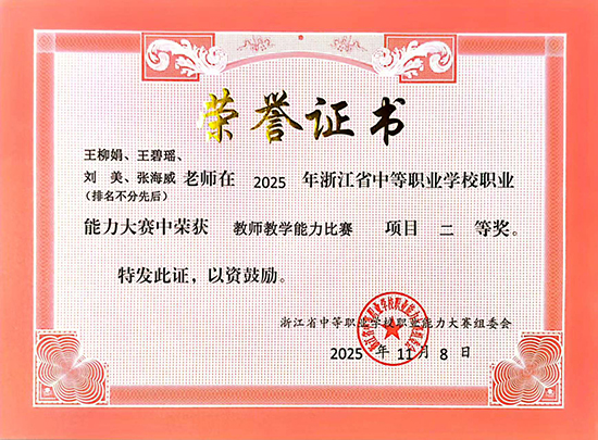 此次獲獎不僅是學校深化教學改革、加強師資隊伍建設成果的體現,更是學校躍階攀高、雙優建設的新起點!學校將繼續堅持“以賽促學,以賽促教、以賽促改,以賽促建”,推動教師教學能力全面提升,為培養高素質技能型人才奠定堅實基礎。(葉翠)