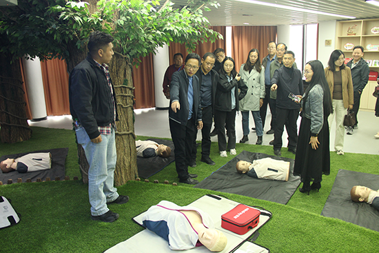 研學(xué)班一行在傅校長的陪同下,首先參觀了學(xué)校的校園環(huán)境、仁昌醬園體驗基地、智慧教室、應(yīng)急救護(hù)實訓(xùn)室等教學(xué)設(shè)施。參觀過程中,研學(xué)班成員詳細(xì)詢問了各功能場館的運營模式、課程設(shè)置以及服務(wù)市民的具體情況,對安昌成校完善的硬件設(shè)施、濃厚的終身學(xué)習(xí)氛圍以及貼近社會需求的教學(xué)模式給予了高度評價。