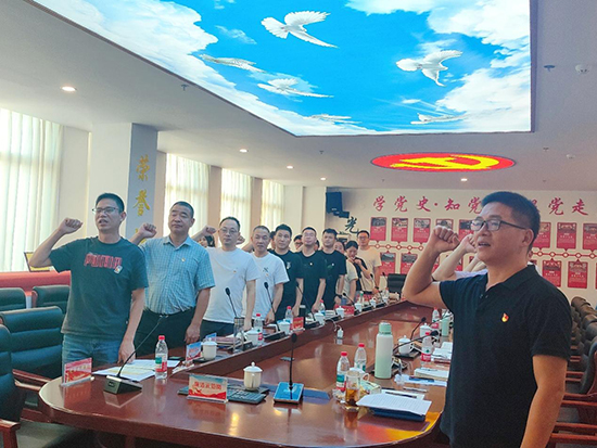授牌結束后,全體黨員起立,開啟莊嚴的集體宣誓環節。陳書記帶領大家高舉右拳,以鏗鏘有力的聲音宣讀誓詞,誓言中不僅蘊含著對黨的教育事業的忠誠,更包含著三大黨小組踐行“先鋒”使命、堅守“廉潔”底線的鄭重承諾。“要以‘匠心’守初心,以‘文心’育新人,以‘創新’開新局”,這場宣誓既是一次靈魂的洗禮,更是三大黨小組明確育人方向、強化責任擔當的精神動員。