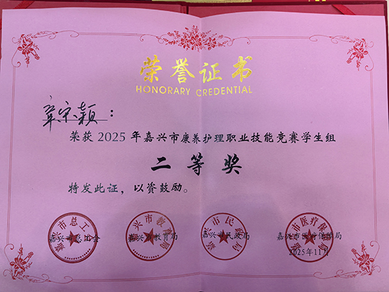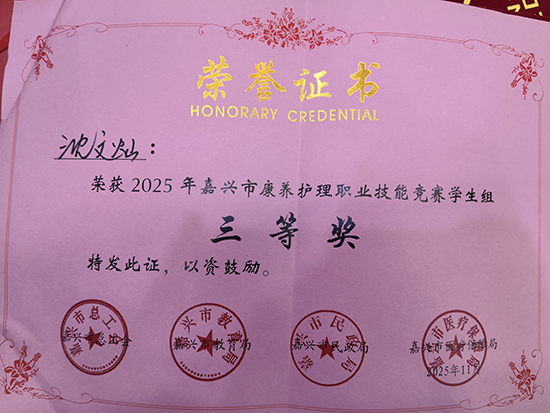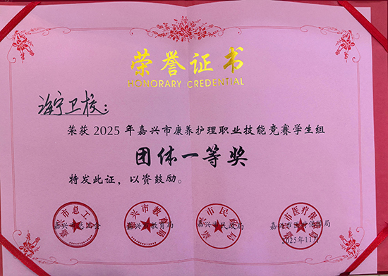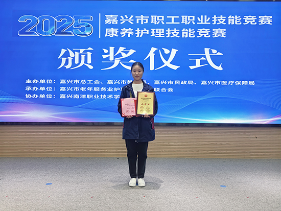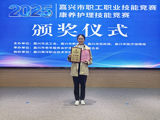 近日,2025年嘉興市康養(yǎng)護(hù)理技能競賽在嘉興南洋職業(yè)技術(shù)學(xué)院圓滿落幕。本次賽事由嘉興市總工會、市教育局、市民政局、市醫(yī)保局聯(lián)合主辦,匯聚了全市8支職工代表隊及4所職業(yè)院校的40名選手同臺競技,共同角逐康養(yǎng)護(hù)理領(lǐng)域的技能巔峰。海寧衛(wèi)生學(xué)校學(xué)生章宋穎、沈文燦憑借扎實的專業(yè)功底與溫情的服務(wù)理念脫穎而出,分別榮獲學(xué)生組二等獎、三等獎,同時榮獲學(xué)生組團(tuán)體一等獎,更在現(xiàn)場成功簽約企業(yè),為青春交出了一份亮眼答卷。