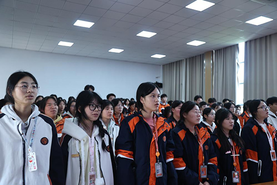典禮伊始,雄壯激昂的《中華人民共和國國歌》奏響,全體人員肅立齊唱。